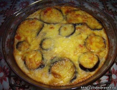 Интересный рецепт для баклажанов, обязательно попробую так приготовить. Я запекаю немного по другому, баклажаны нарезаю и обрабатываю также, а вот помидоры режу кружочками и лук тоже кольцами. Все это слоями выкладываю в форму, или выставляю по очереди в рядок. А уже сверху заливаю яйцом с молоком, только так чтобы верхний слой был чуть чуть не покрыт, а сверху тру сыр. Много, что бы получилась такая крышечка сырная. Очень вкусно получается. |