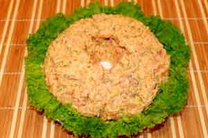 Хочу добавить, что мягкий творожный сыр в салате можно заменить на 3 плавленых сырка со вкусом паприки, получается тоже очень вкусно! Если вы решите использовать сырки, то их необходимо натереть на мелкой терке и добавить с майонезом в рыбный фарш.